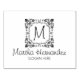 This "Monogram" stamp features custom name and slogan with a floral border.
