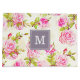 Classic floral pattern of old roses on bistre background. Very classy vintage graphics with personalised monogram into a pastel grey square shape on large gift bag. You can easily change monogram (font, size, colour and position) circle (size and position) and elements of the luggage. Matching products: luggage, luggage tag, pillow, cases and more...