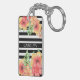 Beautiful contemporary mint green, coral red and sunny yellow floral watercolor on a classic horizontal black and white stripes pattern. With room to customise or personalise with name, monogram or initials of your choice. Pretty, preppy, modern and whimsical design for the elegant artistic fashionista or artsy fashion diva, hip trendsetter, vintage retro art style or flowers motif lover.