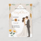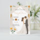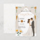 This beautifully designed card features a romantic illustration of a bride and groom surrounded by a lush floral arch. It is perfect for couples looking for a mix of classic style and modern charm.