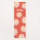 Custom floral yoga mat with daisy flower design. Cute design for yoga lessons, class trainer, coach or gym instructor. Fun personalised fitness and sports equipment gifts. Add your own name or monogrammed initials. Floor material for yoga poses. Stylish script typography template with orange red background colour. Personalised Birthday gift ideas for men and women. Create unique presents for friends, family, teacher, mum, wife, girlfriend, sister, coworker etc.