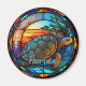 Cute faux stained glass tropical sea turtle scene, personalizable trip souvenir. Great for Christmas and family vacation keepsake, or honeymoon keepsake.