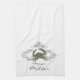 Custom Flourish Crab Kitchen Towel - Customise with your initial and name.  Lettering in dark grey and matches flourishes.  Crab is olive green.