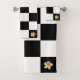 Custom Flower on Black and White Chequered Pattern Bath Towel Set