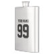 Personalised football jersey number stainless steel flask. Cool masculine tailgate party or birthday gift idea for men and women. Make one for dad, husband, uncle, brother, grandpa, father, coach, player, team etc. Personalizable sports gift for guys. Manly metallic design
