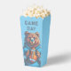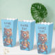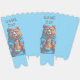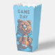 Custom football favour boxes featuring an athletic bear holding a football. Great for those hosting a party for an upcoming football game. Customise the text on the front and back of the boxes. Modern blue design. Use the template to create your own custom football favour boxes.