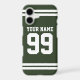 Custom football jersey number athletic stripe iPhone 17 Case. Personalized smartphone cover with sports template design. Add your own quote, name or monogram letters. Also available for other phones like Samsung Galaxy. Awesome Birthday gift idea for friends, family, husband, legendary dad, son, brother, grandpa, sports coach, fitness instructor, personal trainer, father etc. Suitable for men and women.