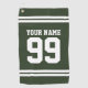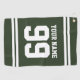 Custom football jersey number striped golf towel. Personalised sports towel with football jersey digits. Unique golfing gifts for men and women. Athletic typography template. Cool Birthday gift ideas for golfer, husband, football player, athletic dad, father, friend, co worker, boss, colleague, coach, instructor, trainer, teacher, grandpa, retired person etc. Add your own surname or funy quote. Including hook to hang it up. Unique golf accessories for friends and family. Also great for fans of basketball, soccer, volleyball, hockey etc. Green or custom background colour.