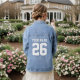 Custom football jersey number women's jeans jacket. Cute sporty clothing for women and teen girls. Add your own name, team name , monogram letters and number. Fun fashion for fans of American football, basketball, soccer, baseball, hockey etc.