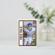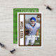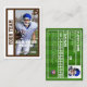 Be just like the pros by having your very own custom, football quarterback, trading card. This sports card can be edited to feature photos of yourself on the front and back, along with your personal football quarterback statistics on the back. The card's front has a football end zone design on the left side, where you can insert your team name in a brown sports font. The end zone is white with a brown border. The background of the card's back features a striped-grass football field.