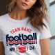 Design for football moms features retro lettering and custom text that can be personalised with a team name and player's jersey number. Red and blue colours can be customised.