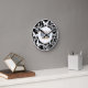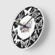 This sophisticated wall clock is special because it pairs a deep forest white background with the delicate, whimsical forms of butterflies in soft peach. The intricate butterfly silhouettes create a striking border that perfectly frames your unique business logo or family name in the center. It is a perfect decorative accent for modern living rooms, creative offices, or boutiques, offering a bold yet graceful aesthetic that makes a stylish statement on any wall.