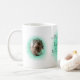 Celebrate your French Bulldog with two photo spots, name personalization, and a soft mint green watercolor wash. The design showcases a delicate silhouette and the poetic line: 'Minty mornings hush the world to Frenchie joy'. A gentle keepsake for dog lovers.
