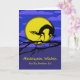 Custom Front Halloween for Brother, Cat on Branch. Paper greeting card with a slim spiked haired cat creeping out on a branch with a full yellow moon behind it. Clouds fill the dark night sky. Purple coloured area at bottom with yellow text. Customise the lower text on the cover of this card for a personalised greeting. Cat element thanks to netrat/Openclipart. © Shoaff Ballanger Studios.