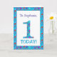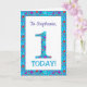 A very pretty 1st Birthday Card to personalise for any name or relative, with the number 1 and the border in bright, ditsy flowers on a turquoise blue background. You can also change the inside message if you wish.