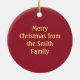 Ceramic Christmas ornaments feature an original marker illustration of a slice of holiday fruitcake with a "Merry Christmas" greeting on the back. Simply personalise with your family name for a festive holiday gift.