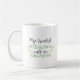 Fun coffee or orange juice mug for gramps with cute My Greatest Blessings Call Me Grandpa text in an elegant vintage light green coloured typography script font, decorated with pretty laurel leave branches. With option to customise or personalise with grandpa's name or his grandchildren's favourite nickname, and to adjust text.