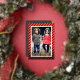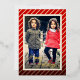 Chic greeting card with a pretty and modern script font on a trendy winter holiday season real gold foil stripes pattern on a red background. With option to customise or personalise with a photo and (limited) text of your choice.