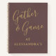 Personalized funny premium look spiral notebook with the name of the host for example, to help keep score tracking at fun game playing gatherings. Soft feminine, luxury, elegant, stylish. Simple minimalist minimal design with the customizable humorous phrase quote saying “ Gather & Game” and the custom name. Timeless neutral monochromatic brown background, muted gold script handwritten calligraphy and elegant golden serif font typography. Playing cards games, or dartboard, or corn hole at family and friends gatherings is fun, relaxing, a true form of self care and wellbeing in the stressful life we have. For your hosting playdates or as a thoughtful gift for a great host. A creative useful lifestyle custom gift under 25 dollars the soft cover version for her, the perfect host, a friend, family member, coworker etc. Make a fun healthy pause from the electronic devices, reconnect and socialize through various society games with real people in person.