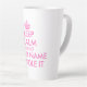 Make your own funny keep calm and let handle it latte mug. Custom coffee cup with vintage keep calm and carry on typography template including a pink crown. Fun drinkware for home or office. Create humorous Birthday presents for mom, dad, father, grandpa, husband, wife, bride, wedding planner, co worker, colleague, teacher, coach, friends, manager, employees, family, business boss, Trump fan etc. Cone shaped glass printed on both sides. Available in 12oz and extra large 17oz size. Big drinking mugs with large print area. Office humor gift ideas.