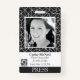 Custom black and white press ID badge with a cool geometric pattern for an investigative reporter or news photographer to get into events or high profile areas. A journalist who needs clearance and behind the scenes access to interviews can add their own custom photo and company logo to this personalised identification card.