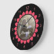 Custom Girl Photo with Peachy Hearts Circle Large Clock