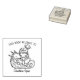 This book rubber stamp features a girl reading to a baby dragon with a custom name.