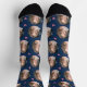 You can show your love for your friend, husband, or partner with these fun and cosy custom-printed socks. This design features a pattern of your own favourite photo along with small cute skitch pink confetti hearts on navy blue background. You can create your own by adding your picture to the round placeholder image. This will be a perfect personalised gift idea and stocking stuffer.