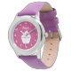 Custom kid's watch with cute pink cupcake image design. Personalizable wrist watches for children. Unqiue Birthday gift idea for girls. Create one for special daughter, granddaughter, cutest cousin, friend, child, grandchild, little or big sister, mum, vegetarian etc. Fun fruit design with numbers and elegant typography template. Also nice as Christmas present for the Holidays. Includes purple colour band. Add your own name or monogram initial letters.