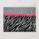 Custom Girly Glitter Silver Pink Zebra Glam Name Postcard