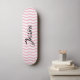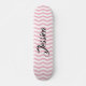 Custom girly pink chevron pattern skateboard deck. Cool wooden skate board design for girls. Fun Birthday gift idea for kids. Personalise with custom name or monogram initial letters. Nice gift idea for granddaughter, daughter, sister, children, friends, cousin etc. Stylish script typography template. Zigzag stripe design.