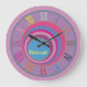 Custom girly pretty swirl circles tornado clock. Pink purple orange blue lavender happy colors.