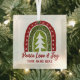 Custom glass Boho Christmas tree ornament with custom name and greeting. Cute gift idea for the Holidays. Peace Love and Joy!