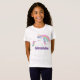 This cute and magical custom t-shirt features a pastel colored faux glitter unicorn placed over a glitter rainbow with clouds. A sample name is printed below the unicorn and rainbow image in a whimsical purple font. You can customize this t-shirt to include your own name or custom message or quote.