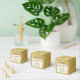Luxe striated gold-look gift box for packaging bath bombs, or other products that are homemade. Pretty white flower and foliage over velum look double gold background and white vellum for ease of seeing text. Text is fully editable, just click on "Personalise" to edit in your details. Great for small or home business start ups seeking beautiful packaging.