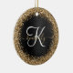 Easily personalize this trendy elegant ceramic ornament design featuring pretty gold sparkling glitter on a black brushed metallic background.