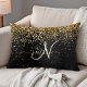Custom Gold Glitter Black Sparkle Monogram Decorative Cushion