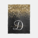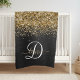 Custom Gold Glitter Black Sparkle Monogram Fleece Blanket