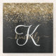 Custom Gold Glitter Black Sparkle Monogram Glass Coaster