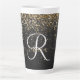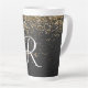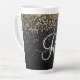 Custom Gold Glitter Black Sparkle Monogram Latte Mug