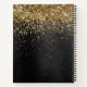 Easily personalise this trendy elegant notebook design featuring pretty gold sparkling glitter on a black brushed metallic background
