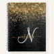 Custom Gold Glitter Black Sparkle Monogram Notebook