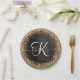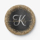 Custom Gold Glitter Black Sparkle Monogram Paper Plate