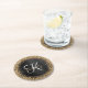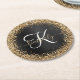 Custom Gold Glitter Black Sparkle Monogram Round Paper Coaster