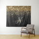 Custom Gold Glitter Black Sparkle Monogram Tapestry