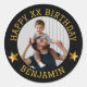 Custom Gold Happy Birthday Photo and Age Name Classic Round Sticker
