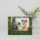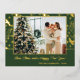 Unique, classy, trendy, pretty and decorative seasonal Christmas Holiday and Happy New Year greetings card. With room to customise or personalise with a photo, family name or names, and text of your choice. Cute golden snowflakes, Holly berries and leaves, and foliage branches pattern on a classic dark forest green background. And a customisable season greeting poem on the backside of the card, including your return address, city, zipcode and state.