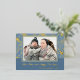 Unique, classy, trendy, pretty and decorative seasonal Christmas Holiday and Happy New Year greetings card. With room to customise or personalise with a photo, family name or names, and text of your choice. Cute golden snowflakes, Holly berries and leaves, and foliage branches pattern on a light slate teal blue background. And a customisable season greeting poem on the backside of the card, including your return address, city, zipcode and state.