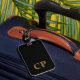 This tag features a black design with gold initials, adding style to your travel gear. Customise it with your initials or those of a loved one, making it a meaningful travel accessory or a thoughtful gift.