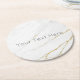This is a classic and stylish white & gold marble personalized paper coaster.